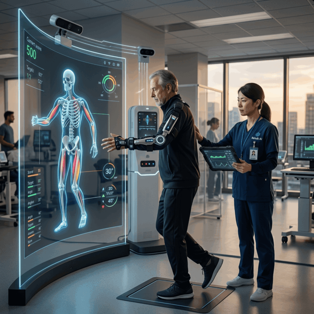 上の図はイメージですが、2025〜2026年現在、リハビリの現場にAIは着実に入り込んできています。