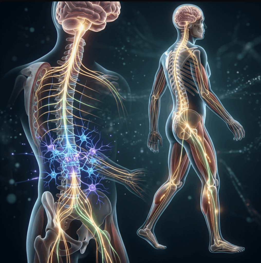 脊髄のCPGが自動的に歩行リズムを生み出します。小脳が精密なタイミングを制御し、大脳基底核が動きを適切に調整しています。